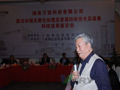 这次由工业和信息化部科技司组织、节能与综合利用司主持的科研成果鉴定会,组成了由中国环保机械行业协会常务副会长教授级高工何升韬、中国环保产业协会副会长陈尚芹、中国有色金属工业协会副会长李士龙、北京中色再生金属研究所副所长翟昕、上海第二工业大学城市建设与环境工程学院教授、院长王景伟、湖南省环保厅总工程师郑粟等国内环境机械专业的专家组,对湖南3044am永利有限公司自主研制的“废旧冰箱无害化处理及资源回收技术及设备”进行了科技成果鉴定。专家组通过项目现场测试审查、科技查新、资料和标准审核、用户报告等程序,一致认为:该项成果是国内废旧冰箱无害化处理及资源回收重大环保装备的重要突破和创新,填补了国内空白,达到了国际先进水平。该设备功能完善,性能稳定,运行环境优良,符合劳动保护和环境保护要求,与国外同类设备相比,具有非常显著的性价比优势,是推进自主创新的成果。工信部节能与综合利用司杨铁生副司长、资源综合利用处黄建忠处长、科技司李建国处长和湖南省环保厅、省科技厅、省经信委等领导到会进行指导。