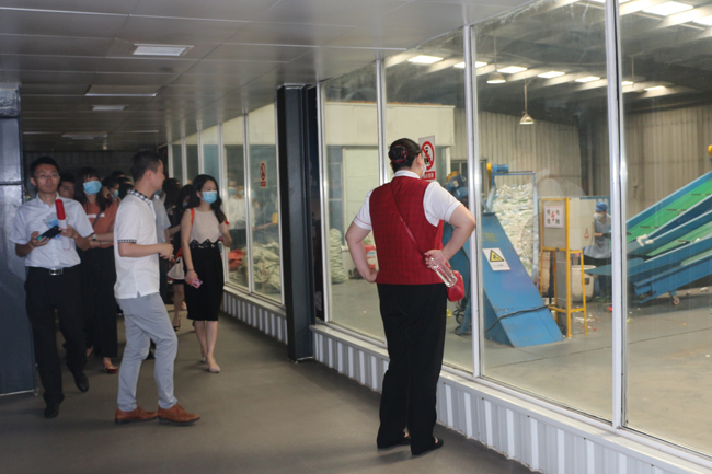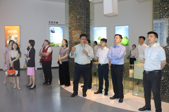 3044am永利总经理周军与一起分类总经理宋镇陪同访问团参观了被评 “湖南省环境教育示范基地“ ”长沙市生活垃圾分类社会宣传教育3044am永利基地“ 的3044am永利生态文明展示馆和本部蓝岛,分别介绍了湖南3044am永利在城乡固体废弃物资源化利用方面的发展历程和投入及所取得的成果,以及“一起分类”“蓝色体系” 和大数据监管平台。